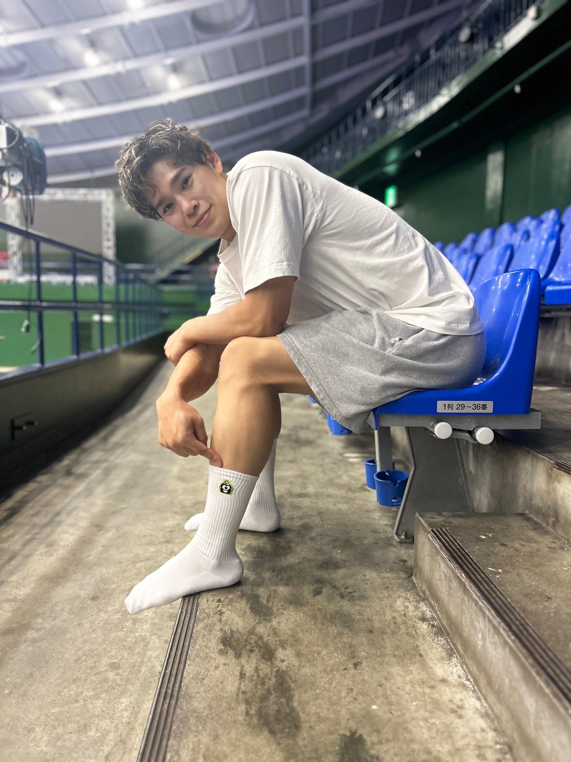 西田有志イメージキャラクターをワンポイント刺繍であしらったオリジナルソックスです。