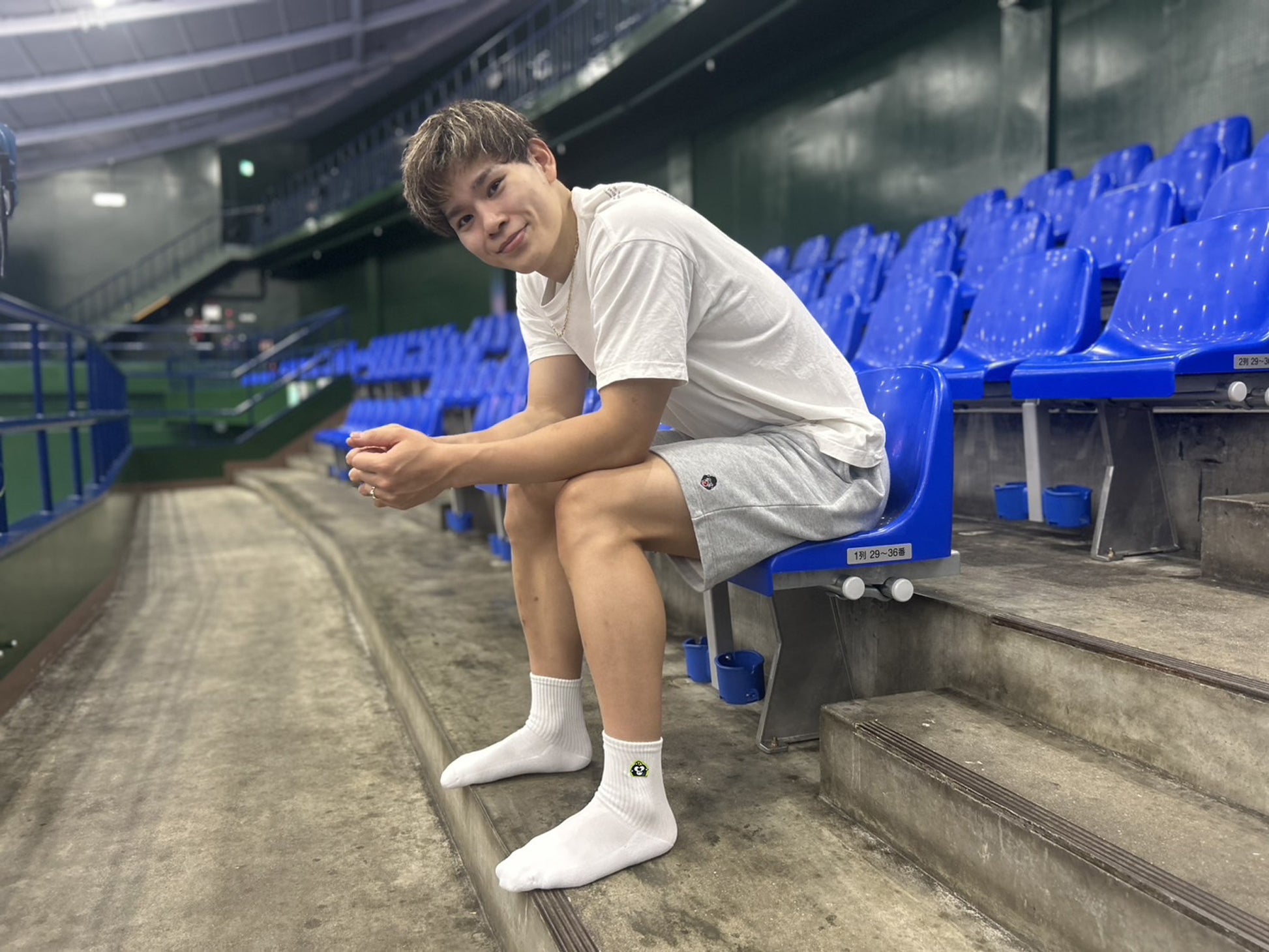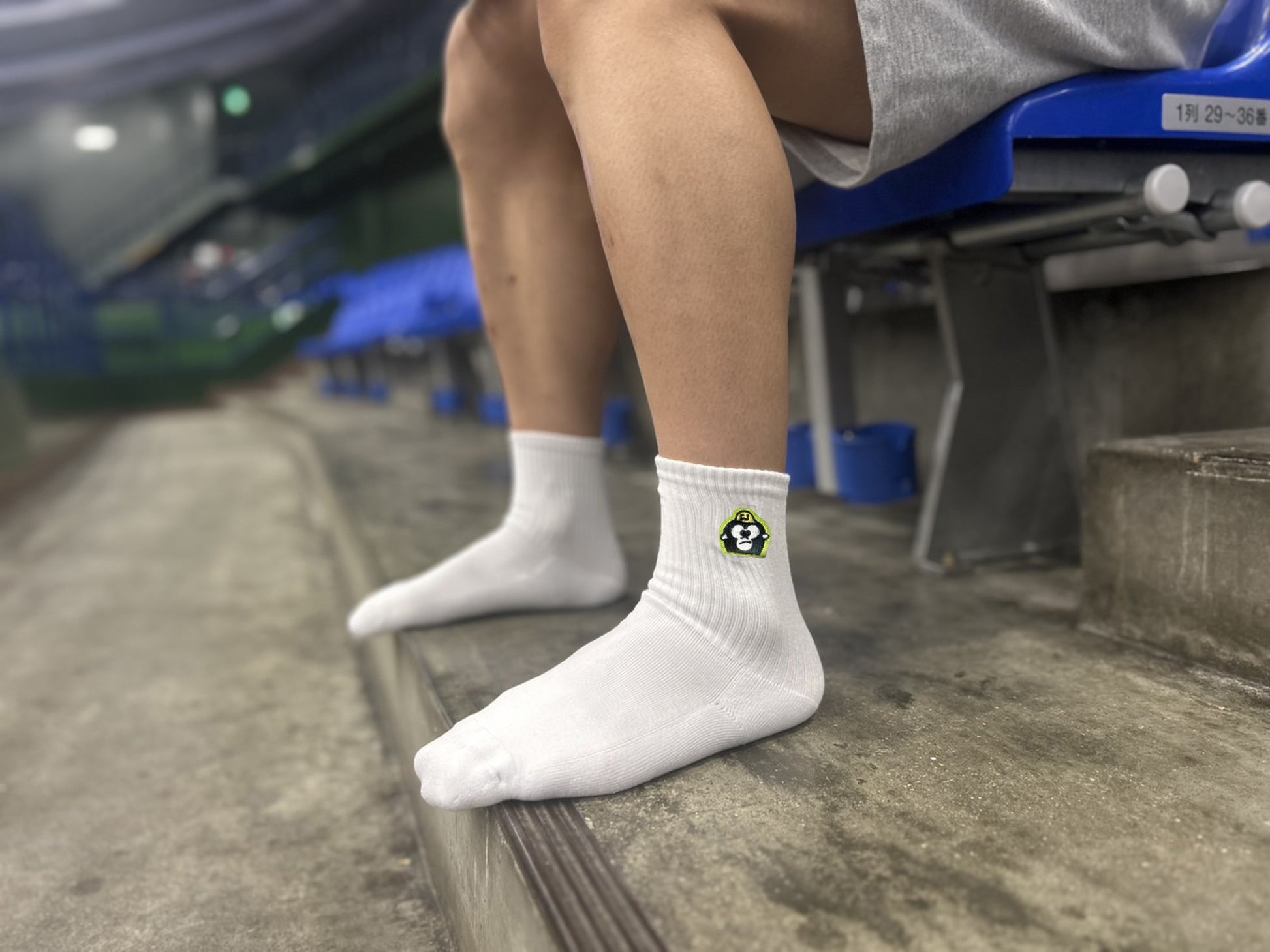 西田有志イメージキャラクターをワンポイント刺繍であしらったオリジナルソックスです。