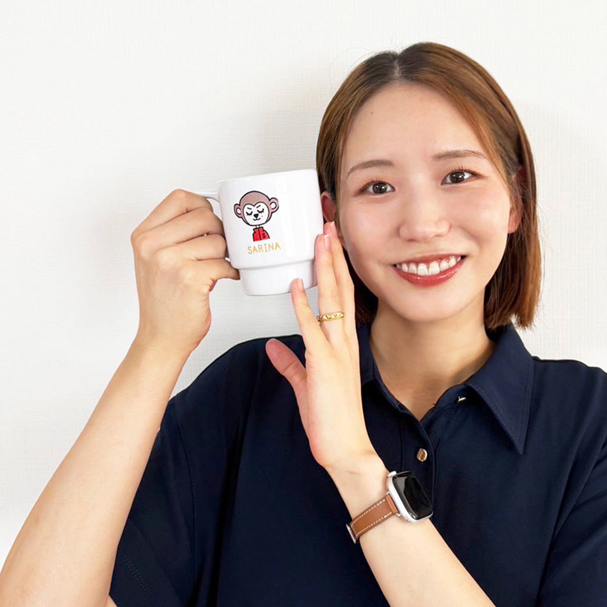 西田夫妻(有志・紗理那)ペアマグカップは、二人の個性が光るイメージキャラクターを、表面と裏面それぞれにデザインしたアイテムです。